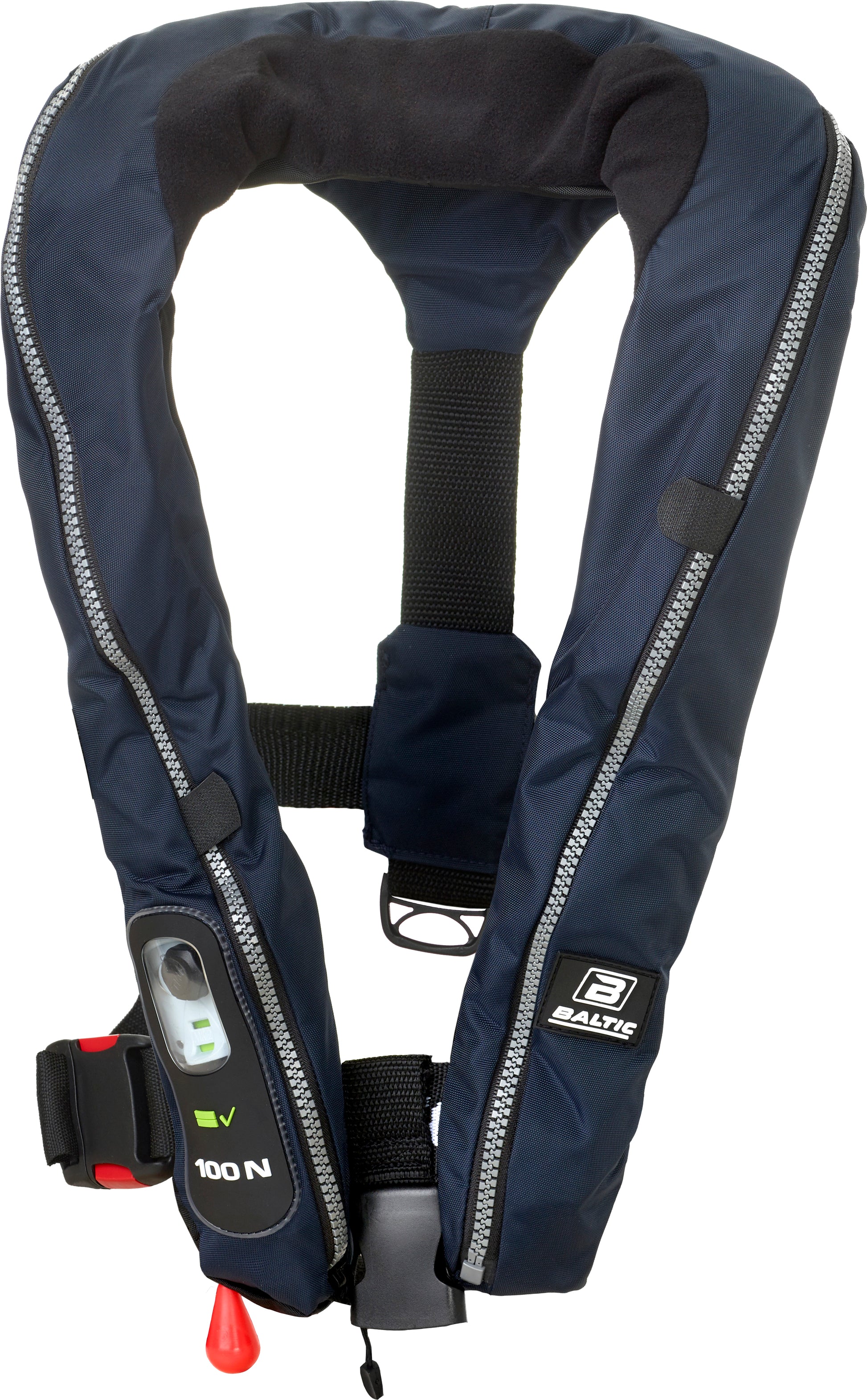 Baltic Compact 100 er en superlett og svært smidig automatisk oppblåsbar redningsvest. Den legger seg mykt rundt nakke og bryst, og kan knapt føles. Vesten har sentrert skrittstropp, og en brukervennlig hurtigspenne på beltet. Nederst på siden har den et vindu som lar deg sjekke om vesten er armert, og klar til å kunne utløses.