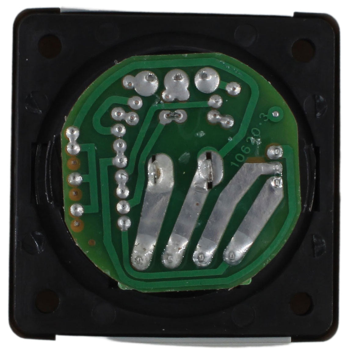 Dimmer i plast med innfelt gullring. 3 A, 12V. Bryteren passer kun til bruk på glødepærer, og fungerer ikke på LED.