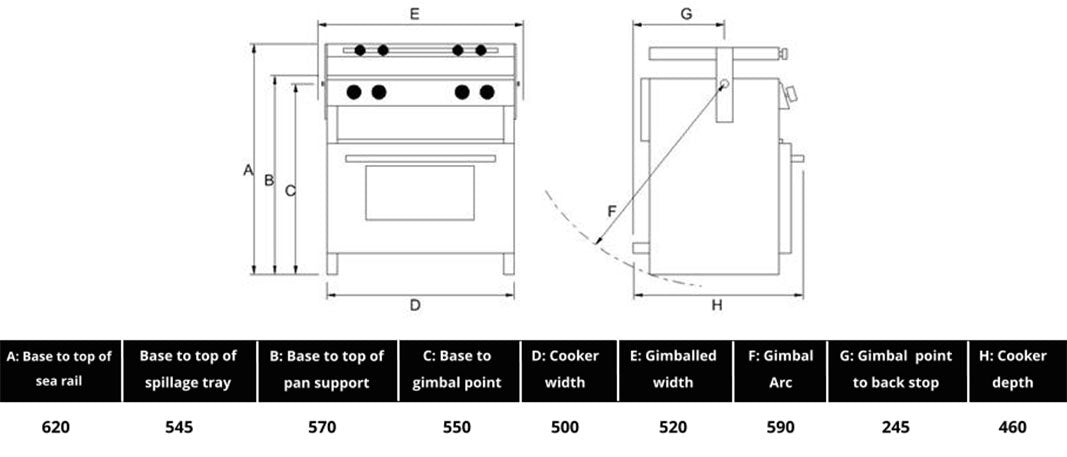 Denne modellen har også en kompakt, men kraftig grill i eget rom, i tillegg til å ha en termostatdrevet ovn. Ovnen har en egen sikring som stopper døren fra å åpne seg om båten krenger.