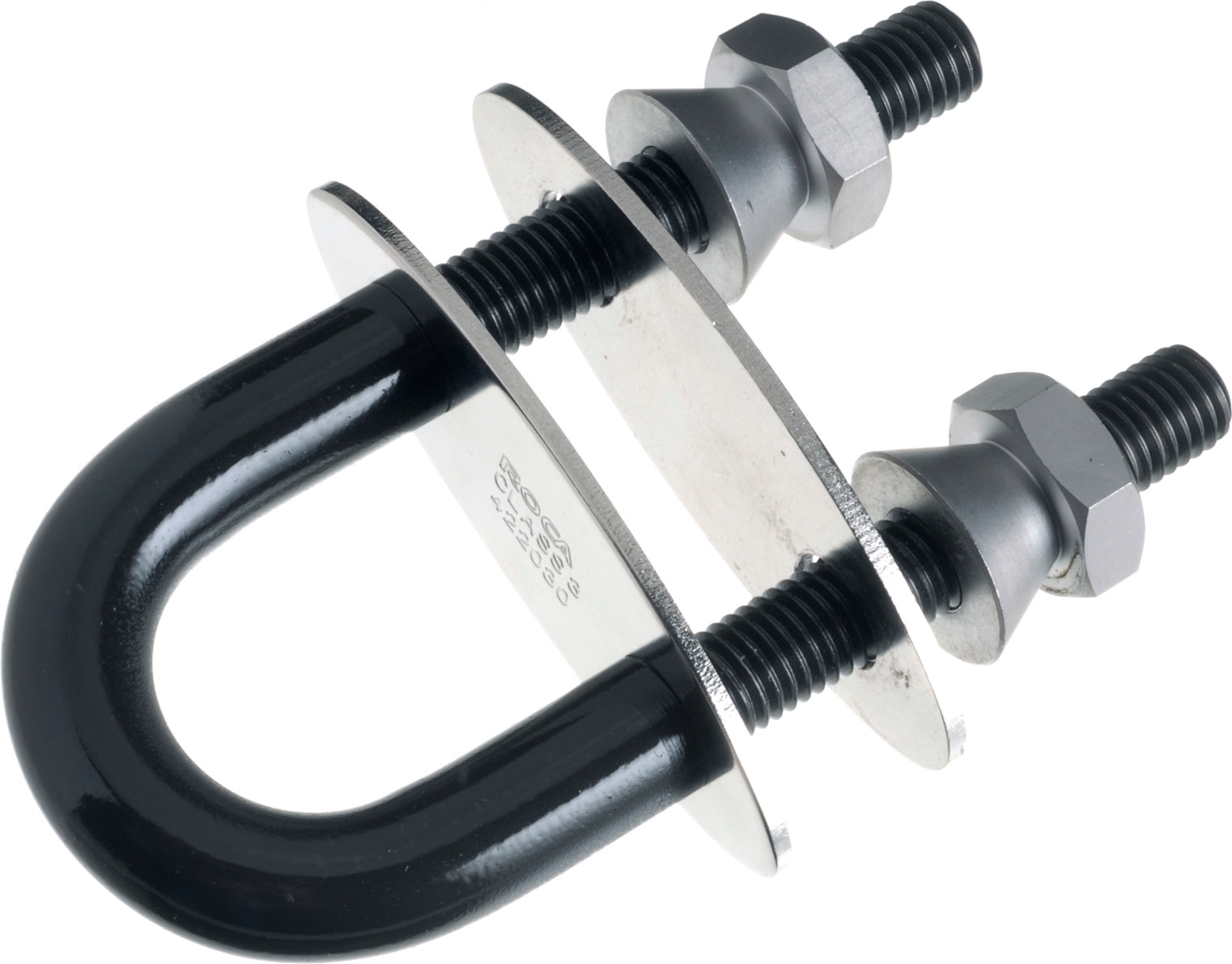 U-bolten er laget i svært hardt, PVD-behandlet rustfritt stål. Behandlingen gjør den mer korrosjonsbestandig enn vanlig rustfritt stål.